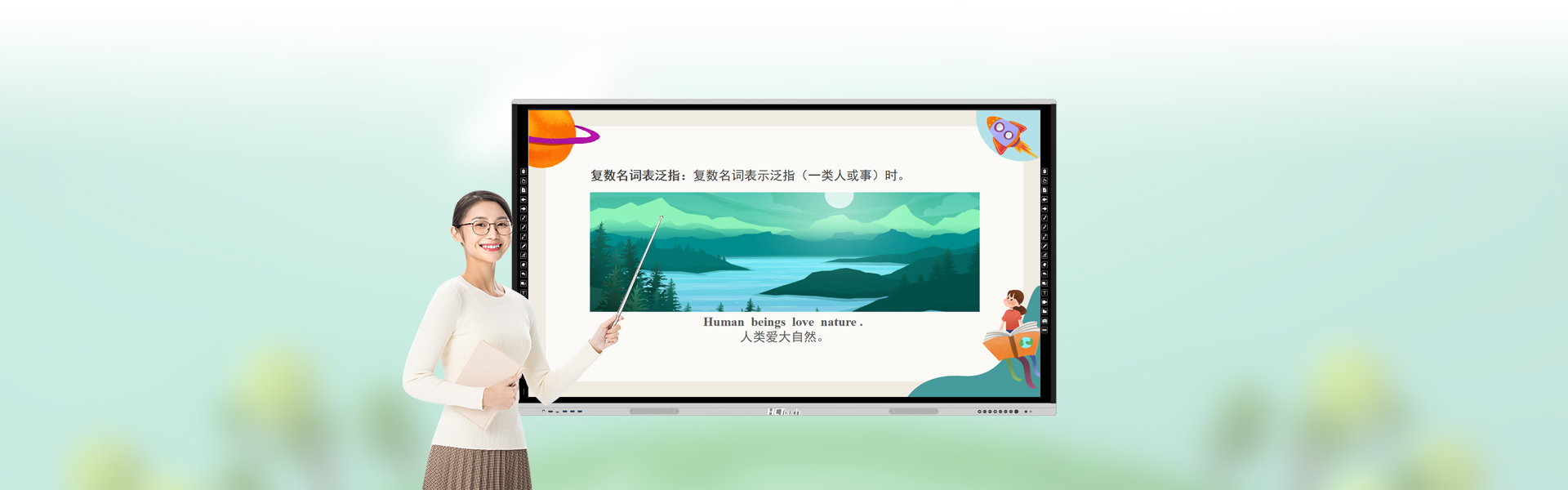20点红外触控技术,支持多人书写,边写边擦;粗细笔技术,实现一笔双色,灵活批注;
