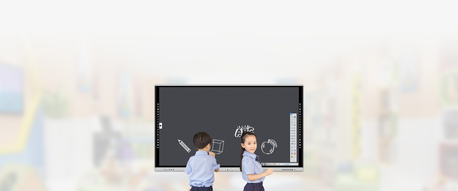 华创智航创思系列液晶触控一体机是一款集高清液晶大屏、电视、电脑、白板、音箱于一体的多媒体智能教学产品。