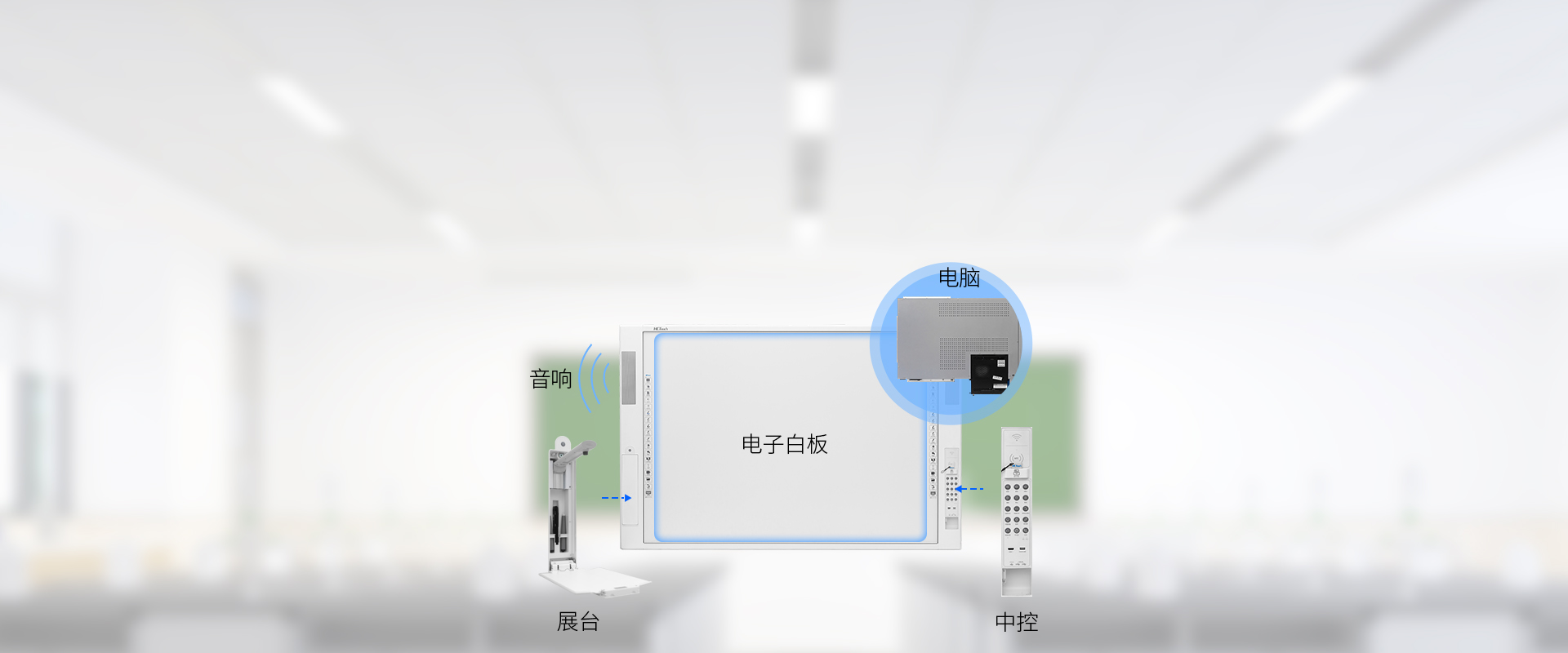 集电子白板、电脑、音响、中控、展台等功能于一体,安装调试更简单;